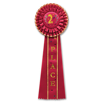 Life is good even if you don't come in 1st place! Show off your hard work with this 2nd Place Deluxe Rosette! This pretty red satin rosette features gold accents. Measures 4.5in x 13.5in.
