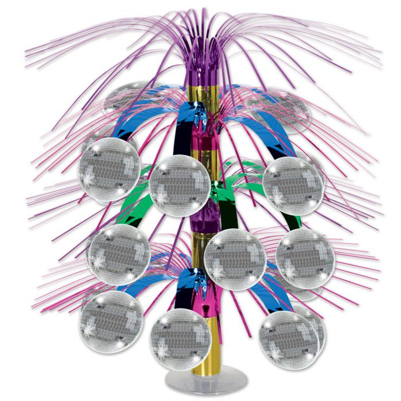 Set the stage for a fabulous celebration with our Disco Ball Cascade Centerpiece! This vibrant foil spray features gold, purple, pink, blue, and green accents, along with fun disco ball cutouts.