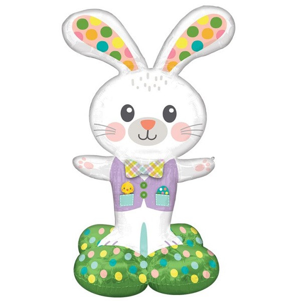 Decorate your Easter celebration with this Airloonz Spotted Easter Bunny Balloon! This DIY self-sealing balloon features a cute printed bunny wearing a vest with polka dot ears. Includes elastic band for tying and a straw for inflating. Measures 46in. *This item is sold uninflated and is not meant for use with helium and will not float.*