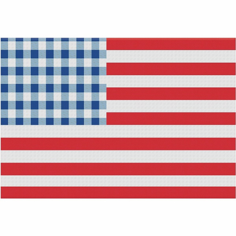Dress your table up in patriotic style for 4th of July with this American Flag Placemat! This woven plastic placemat features a red and white stripe design with a blue and white checked pattern in the corner. Measures 12in x 17.5in.