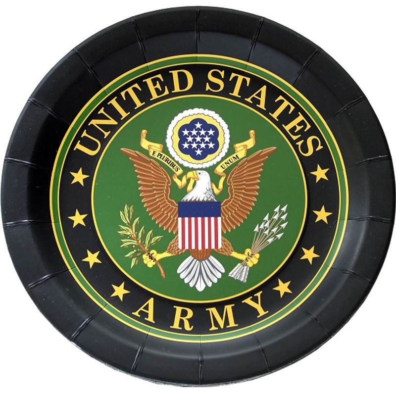 Let your favorite military person enjoy delicious foods with these U.S. Army Dinner Plates! These black paper plates feature the United States Army logo. Package includes 8 9in plates.