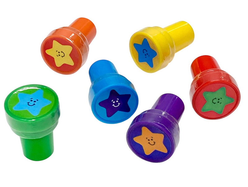 Create fun looks with these Plastic Star Stampers! These stampers feature smiling star designs with cases in red, orange, yellow, green, blue, and purple, perfect for classrooms. Package includes 6 count favors measuring 1.5in.