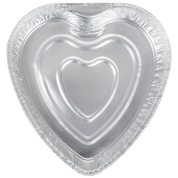 This Heart Shaped Foil Pan is perfect for creating a sweet treat for a Valentine's Day event, anniversary, or any love themed occasion. With a silver interior and stylish red exterior, this aluminum foil baking pan can be kept as part of the thematic presentation. Ideal for cakes and brownies. Freezer and oven safe. Measures 9in x 9.5in x 1.5in.