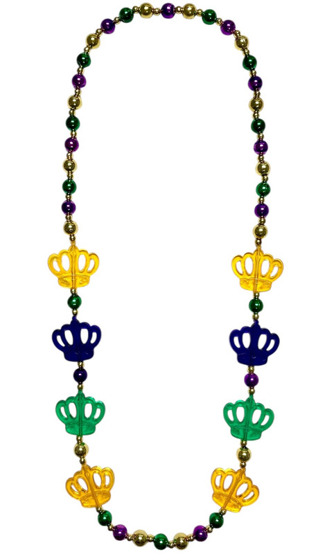 Celebrate Fat Tuesday when you wear this Mardi Gras Acrylic Crown Bead Necklace! This metallic purple, green, and gold beaded necklace features matching color translucent acrylic crown shapes. One size fits most.