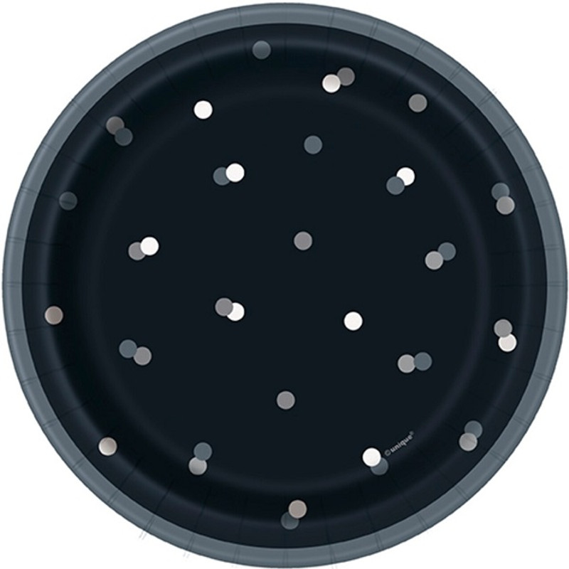 Dish out the delights at your birthday celebration with these Birthday Glitz Luncheon Plates! These small, black paper plates feature grey and white dots. Package includes 8 7in plates.