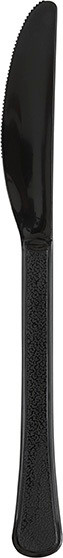 Give your party table setting a classic look with these Black Plastic Knives! These premium quality, heavy duty plastic knives feature a solid black color. Package includes 20 count 7.5in knives.