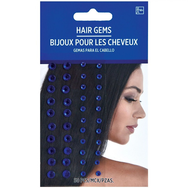 Give your hair a unique look with these Blue Hair Gems! These self adhesive plastic gems feature a gorgeous royal blue color. Package includes 30 count, 6 millimeter gems and 20 count, 4 millimeter gems.
