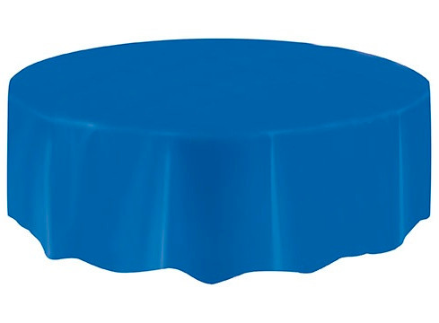 Bring a pop of color to your party table with this Blue Round Plastic Tablecover! This round cover features a royal blue color. Wonderful for sporting events, birthdays, baby showers, and more! Measures 84in in diameter.