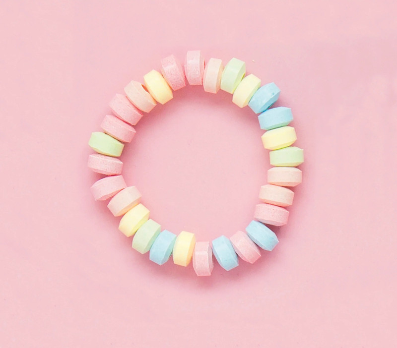 Sweet, stretchy, and fun to wear, these classic Candy Bracelets are a nostalgic favorite for all ages. Each individually wrapped bracelet features a stretchy elastic band strung with bite-sized candy beads in a rainbow of pastel colors. Package includes 10 count bracelets. Net WT 4.9oz total.