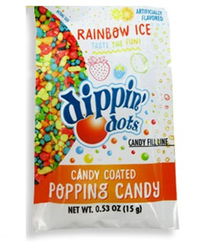 Experience a burst of flavor and fun with Dippin' Dots Popping Candy, available in two varieties: Banana Split and Rainbow Ice. Each pack combines the iconic taste of your favorite Dippin' Dots flavors with the exciting crackle and pop of classic popping candy. Desired flavor not guaranteed. Package includes 1 pouch of candy, Net WT .53oz.