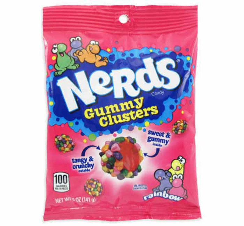 Indulge in a burst of fruity fun with a bag of Nerds Gummy Clusters! These bite-sized clusters combine the classic crunch of Nerds candy with a soft, chewy gummy center, all packed with sweet and tangy flavors. Net WT 5 oz.