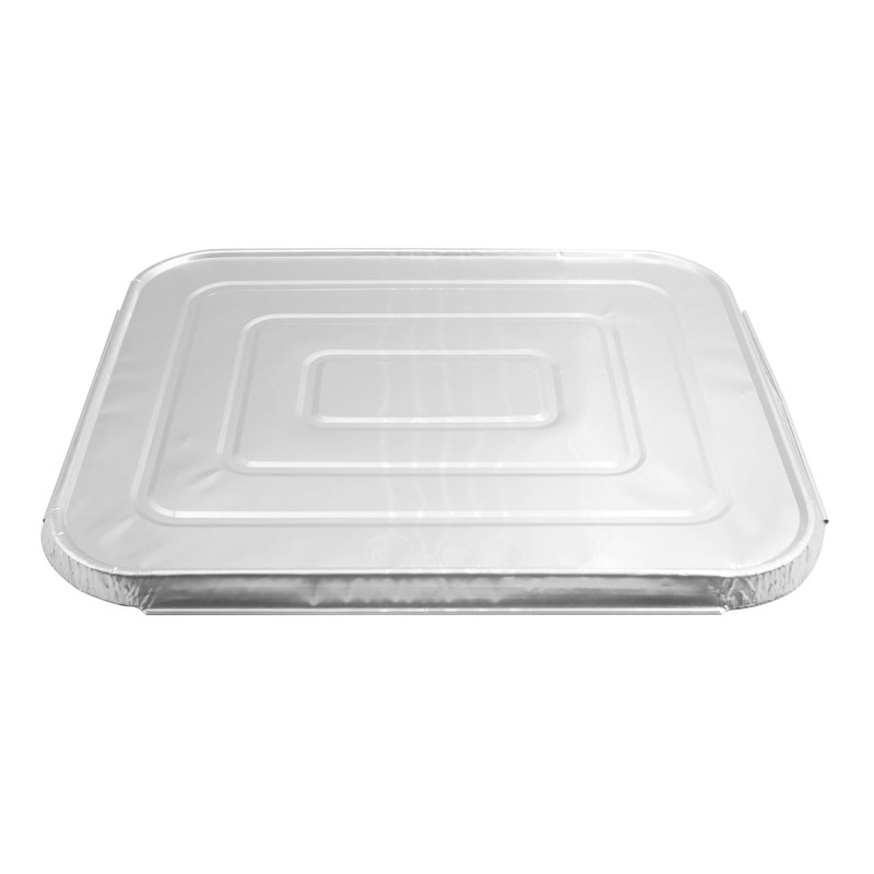 Keep your buffet dishes covered to maintain food temperature with Half Size Foil Pan Lids! These aluminum foil lid seals tight with a foil rim. Package includes 36 count, measuring 12.64in x 10.28in.