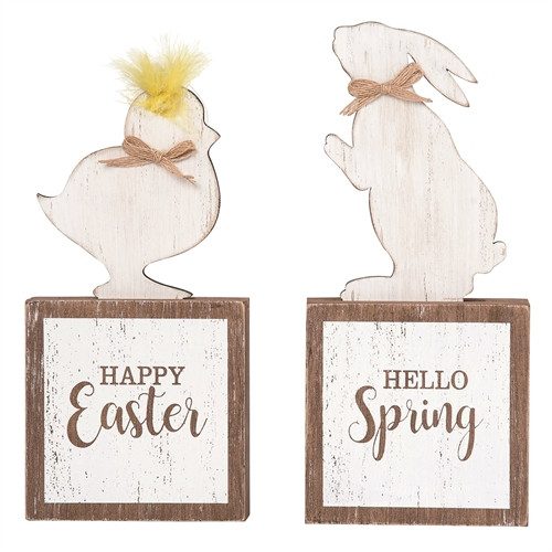 Create a rustic look for your Easter celebration table with this Bunny & Feather Chick Block Decor! Includes 1 4.75in x 1in x 9.25in decoration, style may vary based on availability.