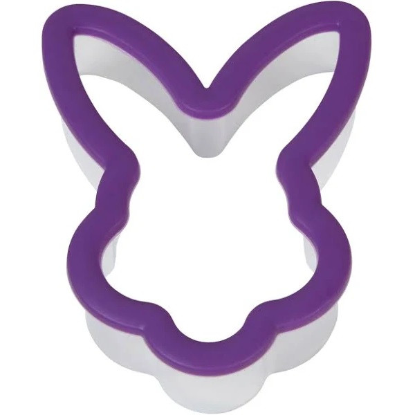 Make some fun Easter cookies with this Bunny Face Comfort Grip Cookie Cutter! This plastic cutter features a bunny face shape with a purple comfort grip. Measures approximately 3in x 4in.