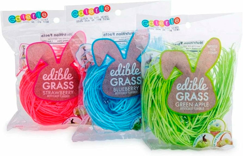 Add a fun twist to Easter baskets or sweet treats with Edible Easter Grass. Available in pink strawberry, blueberry, or green apple, this edible shred is made of potato starch. Desired flavor not guaranteed. Net WT 1oz.