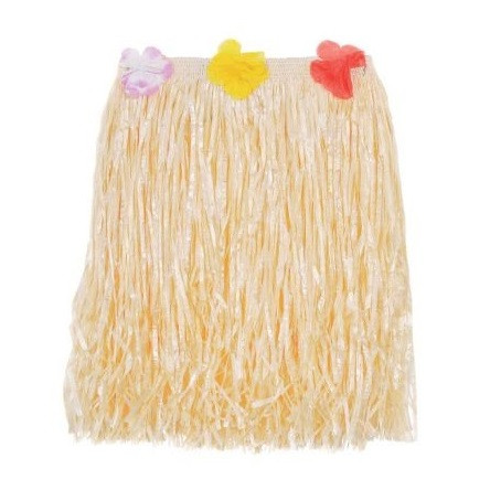 Let your little hula girl look her best with this Child Plastic Mini Hula Skirt! This natural raffia style skirt features fabric floral detail on the waist. Measures 12in x 22in. One size fits most children under 12.