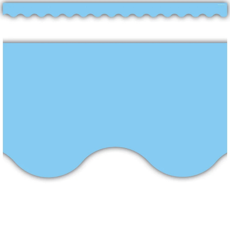 This border trim is perfect for decorating classrooms or school projects. This printed cardstock material features a light blue scalloped design. Package includes 12 count pieces measuring 2.19in x 35in, 35 ft total.