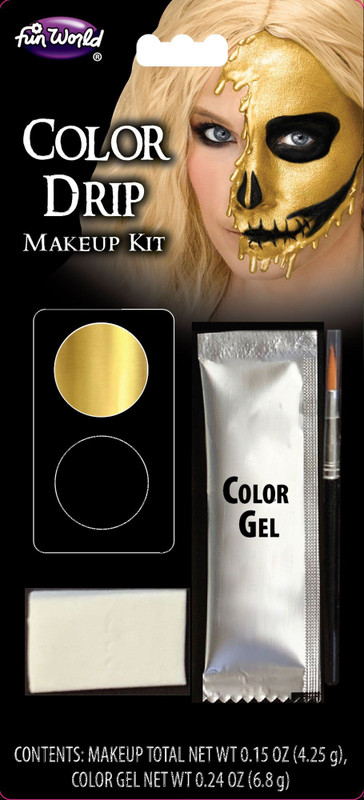 Description Take your skull look to a whole new level with this eye-catching Color Drip Makeup Kit! This kit features a 2 color makeup tray, drip gel, a sponge, and a brush. Additional Details SKU: CP_2858C