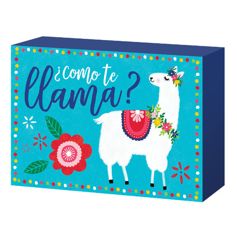Decorate your Fiesta and Cinco De Mayo table with this Como Te Llama Standing Plaque! This blue and teal fiberboard plaque features a cute llama with a bright red fiesta flower and “Como Te Llama” in white and blue script letters. Measures 5in x 8in.