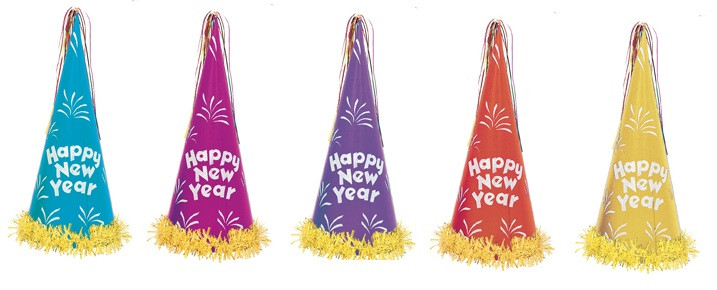Ring in the New Year with a Giant Glitter New Year Cone Hat. This cardstock hat, available in turquoise, purple, fuchsia, yellow, and orange, has multicolor streamers at the top, gold tinsel along the bottom, and the text "Happy New Year" in glitter. Desired color not guaranteed. One size fits most. Package includes 1 count hat, measuring 18in tall.