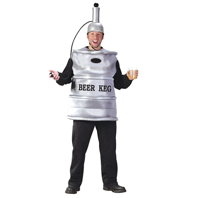 You’ll literally be the life of the party in this comical Beer Keg costume! This costume features a beer keg tunic and a helmet that holds 400ml with an attached beverage tap. One size fits most up to 6ft/200lbs.