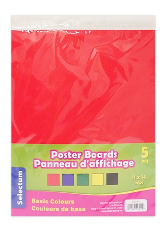 This set of Basic Colors Poster Boards is perfect for school projects, presentations, or any craft night. Including colors red, blue, green, yellow, and black, your project is sure to stand out. Package includes 5 cardstock paper sheets measuring 11in x 14in.