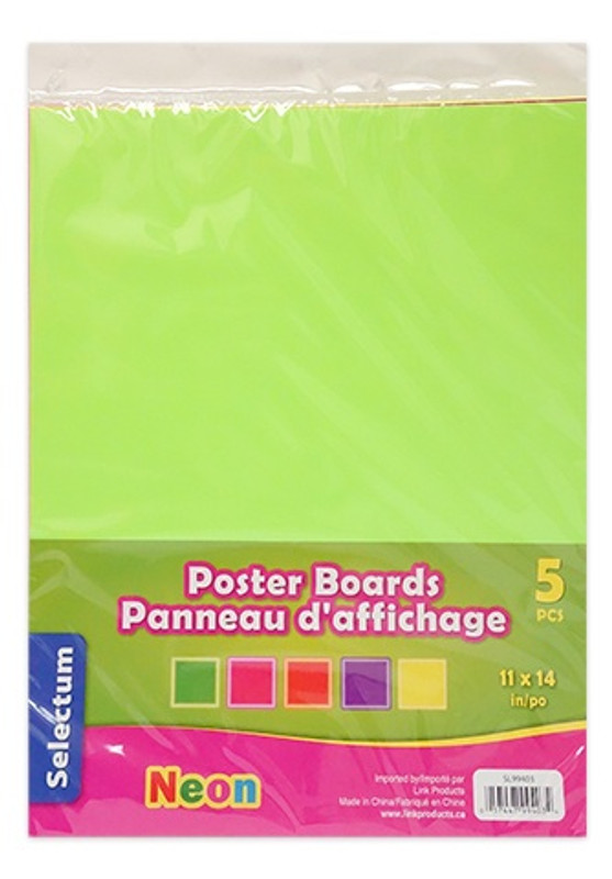 This set of Neon Poster Boards is perfect for school projects, presentations, or any craft night. Including neon colors green, pink, red, purple, and yellow, your project is sure to stand out. Package includes 5 cardstock paper sheets measuring 11in x 14in.
