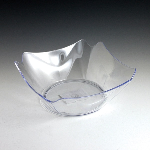 Dish out your favorite delights in this eye-catching Crystalware Flower Bowl! This small, clear plastic bowl features a curvaceous design. Measures 8in.