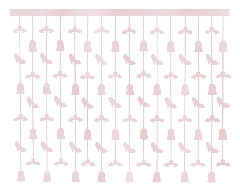 Create a magical look for your little girl's party pics with this Disney Princess Foil Backdrop! This backdrop features light pink foil strands of slippers, crowns, and bells, and includes an adhesive strip for hanging. Measures 5ft x 4ft.