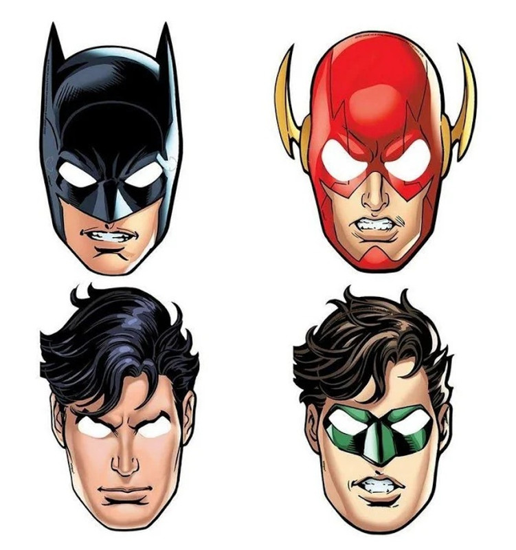 Let your young party guests suit up like their favorite superheroes with these Justice League paper masks. This fun set includes masks of Batman, Superman, The Flash, and Green Lantern, each printed on cardstock with a black elastic band. One size fits most children Package includes 8 count masks measuring about 9in x 5.25in.