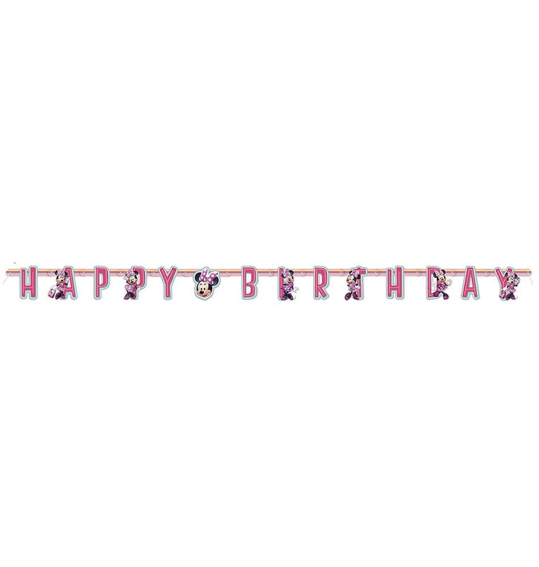 Celebrate in style with this Minnie Mouse Jointed Birthday Banner! Made from cardstock, the banner spells out "HAPPY BIRTHDAY" in pink lettering, accented by adorable poses of Minnie Mouse throughout. Assembly required. Measures 6ft.