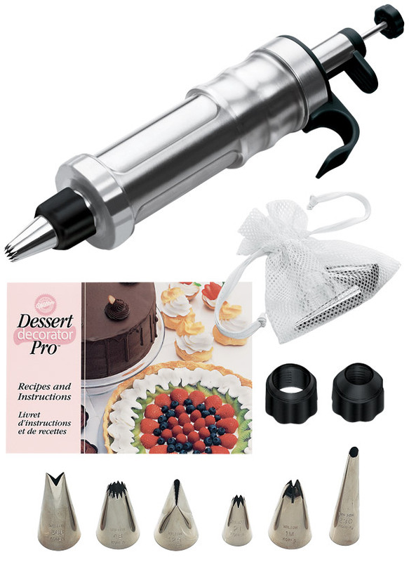 Dessert Decorator Pro has everything you need squeezed into one trusty tool! Design and decorate in minutes. Works with most tips and couplers. Includes 6 tips and 2 couplers.