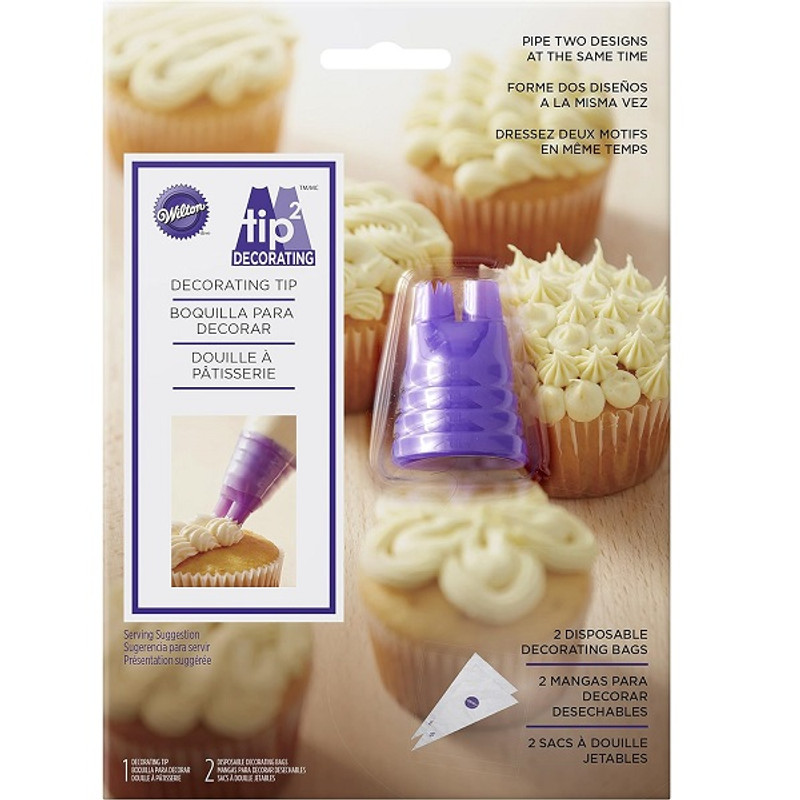 Pipe two different designs at one time with this Duo Piping Tip Set! This plastic tip features round and star tips in one. Package includes 1 decorating tip and 2 disposable decorating bags.