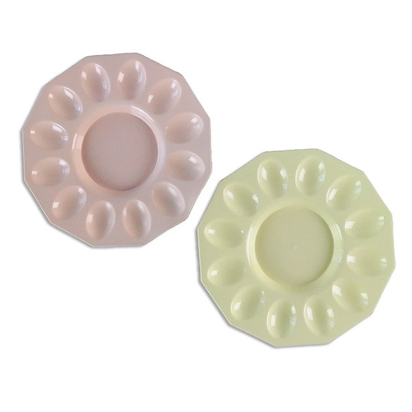 This Easter Egg Platter is perfect for colored or deviled eggs! This plastic platter features 12 egg cavities and a scalloped edge. Includes 1 9.25in platter, color may vary.