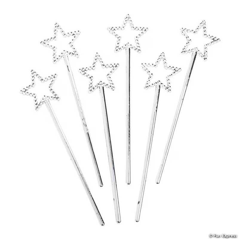 Sprinkle some magic in your guests' loot bags with these Mini Plastic Silver Star Wand Favors! These silver plastic wands have star shapes on the end. Package includes 6 count favors measuring 6.5in.