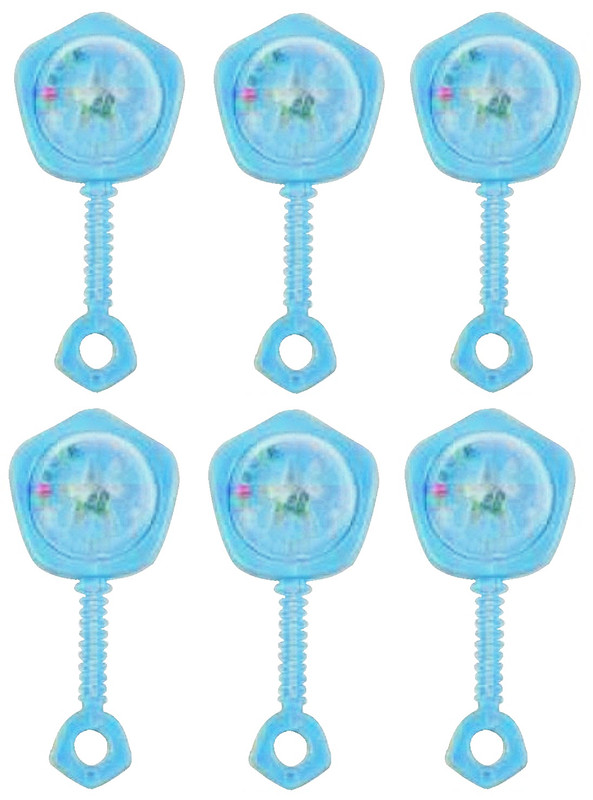 Make some noise for your new baby boy with these Blue Rattle Favors! These blue plastic rattles feature a clear star dome with tiny colorful beads inside. Package includes 6 count 2.75in favors.