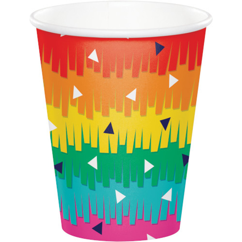 Brighten up your Cinco de Mayo party drinks with these Fiesta Fun Paper Cups! These sturdy paper cups feature a colorful classic pinata design. Package includes 8 9oz cups.