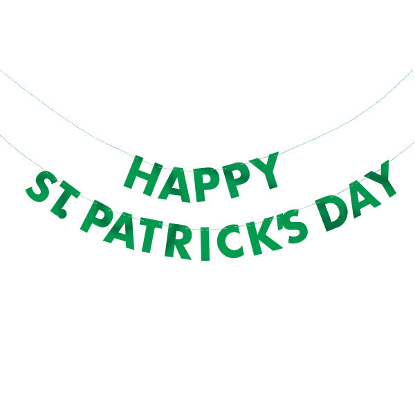 Add some stylish shine to your décor with this Foil Happy St. Patrick's Day Letter Banner! This banner features Happy St. Patricks Day spelled out in green foil cardstock letters with a green and white hanging twine rope. Measures 10.5ft.
