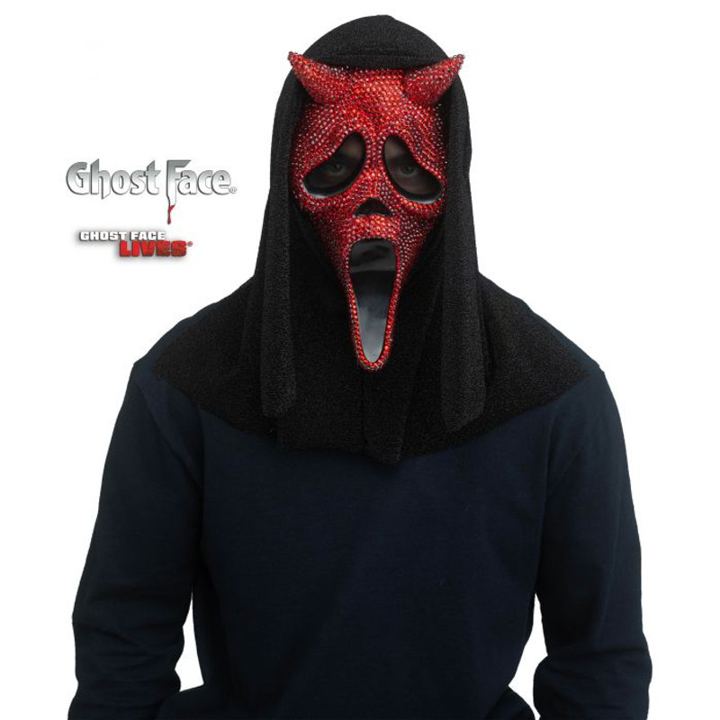 Unleash your dark side with the Red Devil Face Bling Mask, inspired by the iconic Ghost Face and designed for those who dare to stand out. This adult-sized mask features individual gemstones that create a striking, devilish visage with an eye-catching red hue.