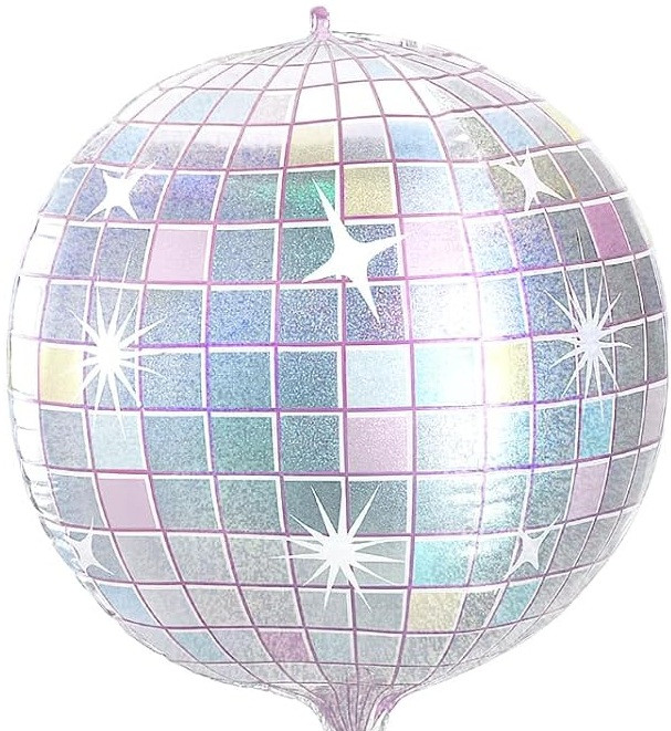 This Iridescent Disco Ball Balloon is perfect for decades theme parties or any musical themed get together. This spherical, balloon has an iridescent disco ball design with white sparkles. Balloon is approximately 16 inches after inflation.