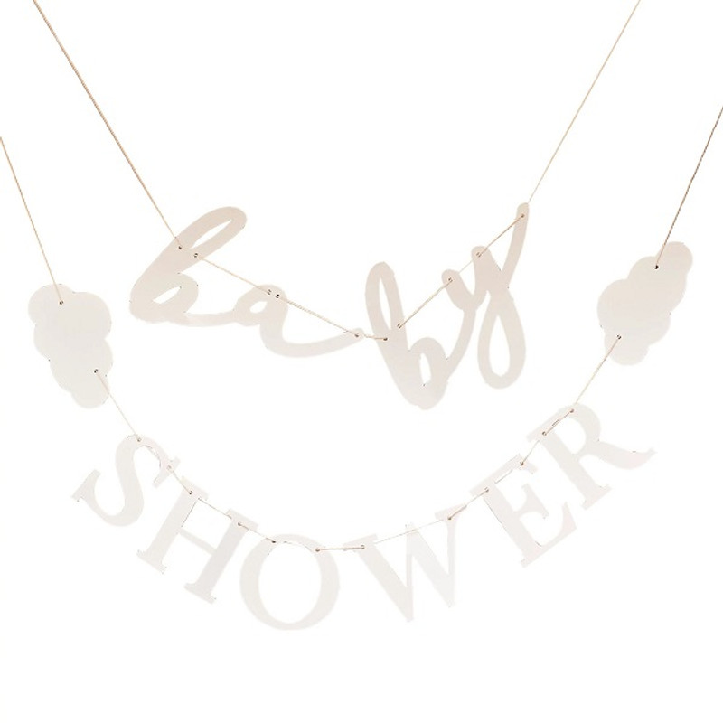 Description Dress up your baby shower in modest style with this Ginger Ray Eco Baby Shower Banner! This paper banner features Baby Shower with cloud accents. Measures 5ft. Additional Details SKU: PT_0100011074981
