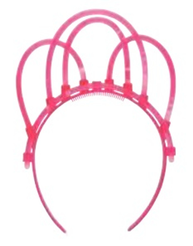 Light up the party with this dazzling Glow Tiara! This fun accessory features a headband with glowsticks arched in the shape of a tiara. Available in pink, purple, or green, it’s perfect for birthdays, glow in the dark parties, or nighttime events. Desired color not guaranteed. Assembly required. Package includes 1 count plastic headband with connectors, two 8in lightsticks, and three 6in lightsticks.