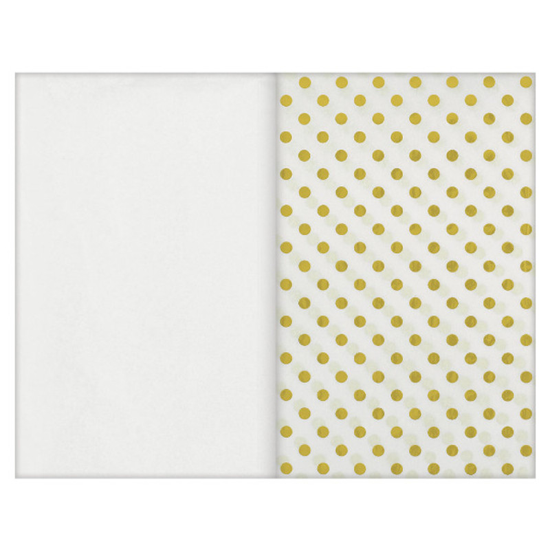 Add some trendy elegance to your gift bags with this Gold Dot Tissue Mix! This mix features white tissue paper and white with metallic gold dots. Perfect for birthdays, anniversaries, and more! Package includes 8 – 20in x 20in sheets.