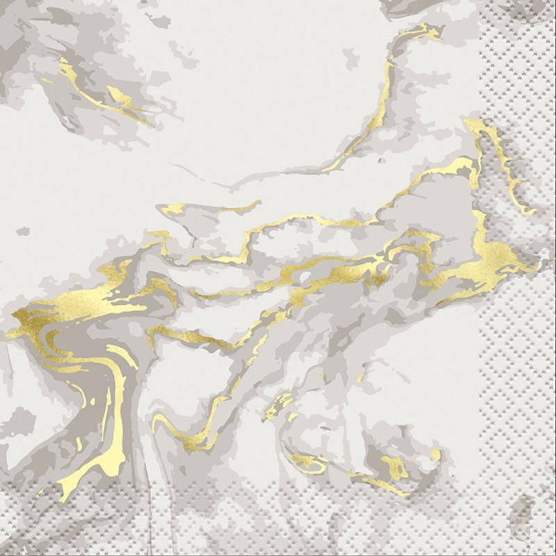 Add some pizzazz to complement your drinks with these Gold Marble Beverage Napkins! These small, white paper napkins feature a gold foil marble design. Package includes 16 5in x 5in napkins.
