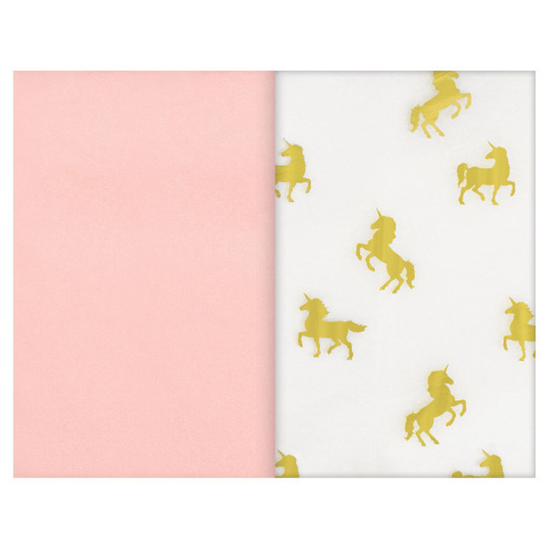 Add a magical look to your special present with this Golden Unicorn Tissue Mix! This mix features pink tissue paper and white with metallic gold unicorns. Great for birthdays and more! Package includes 8 – 20in x 20in sheets.
