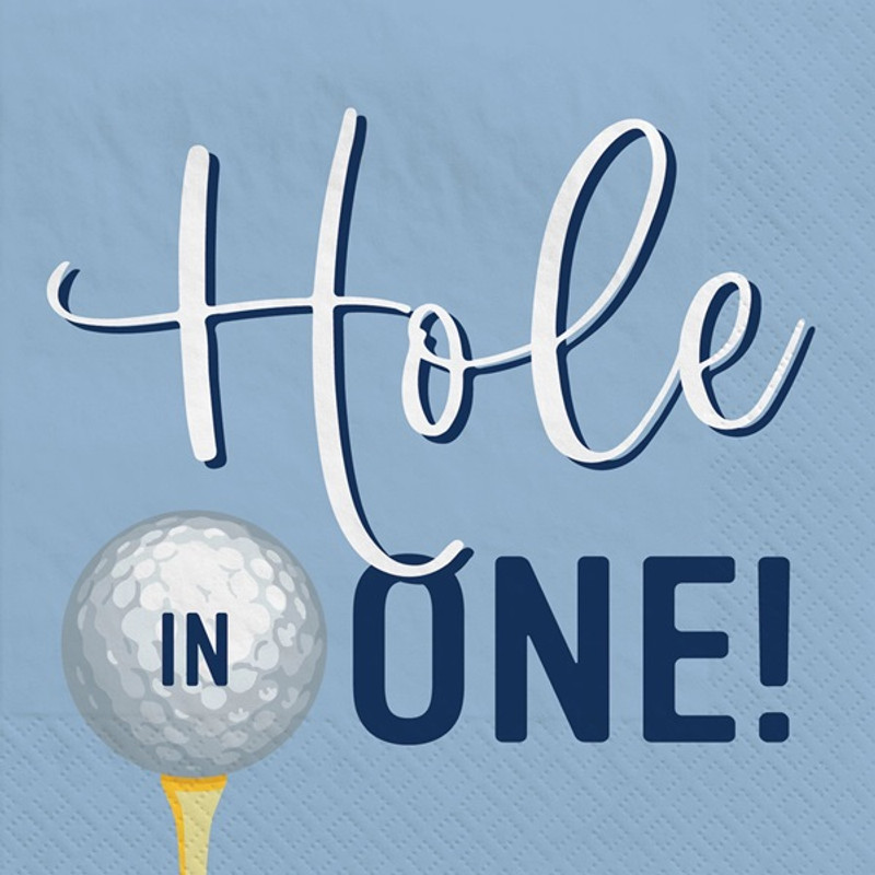These Hole in One Golf Beverage Napkins are perfect for any Masters watch parties or golf themed events! These light blue napkins say HOLE IN ONE in a darker blue making them pop! These napkins measure 5 inches by 5 inches and come in a pack of 40.
