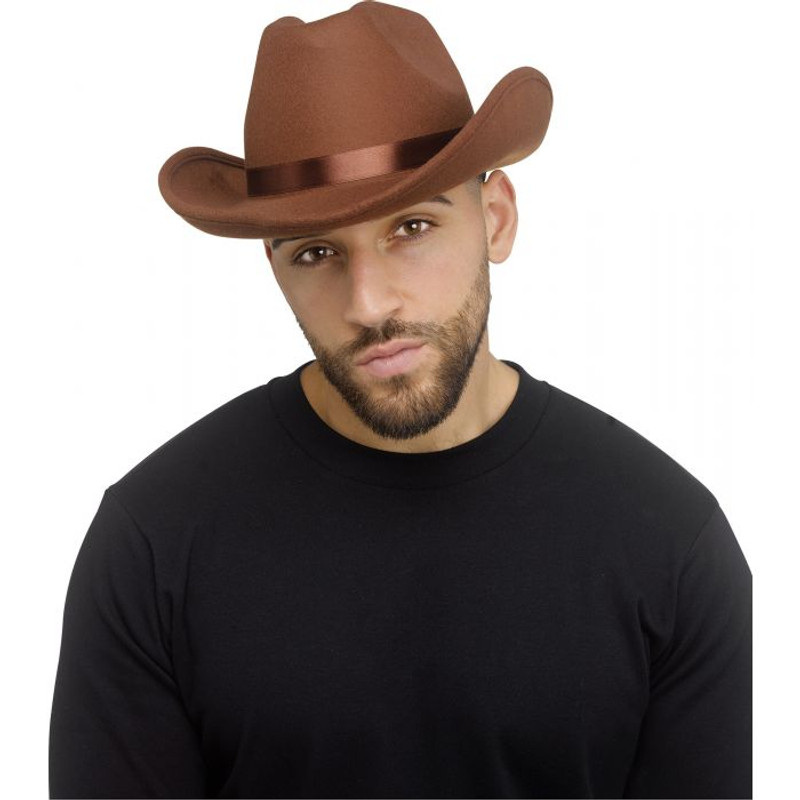 Top off your classic cowboy look with this Adult Brown Flocked Cowboy Hat! It also has a shiny brown hat band. One size fits most adults and older teens.