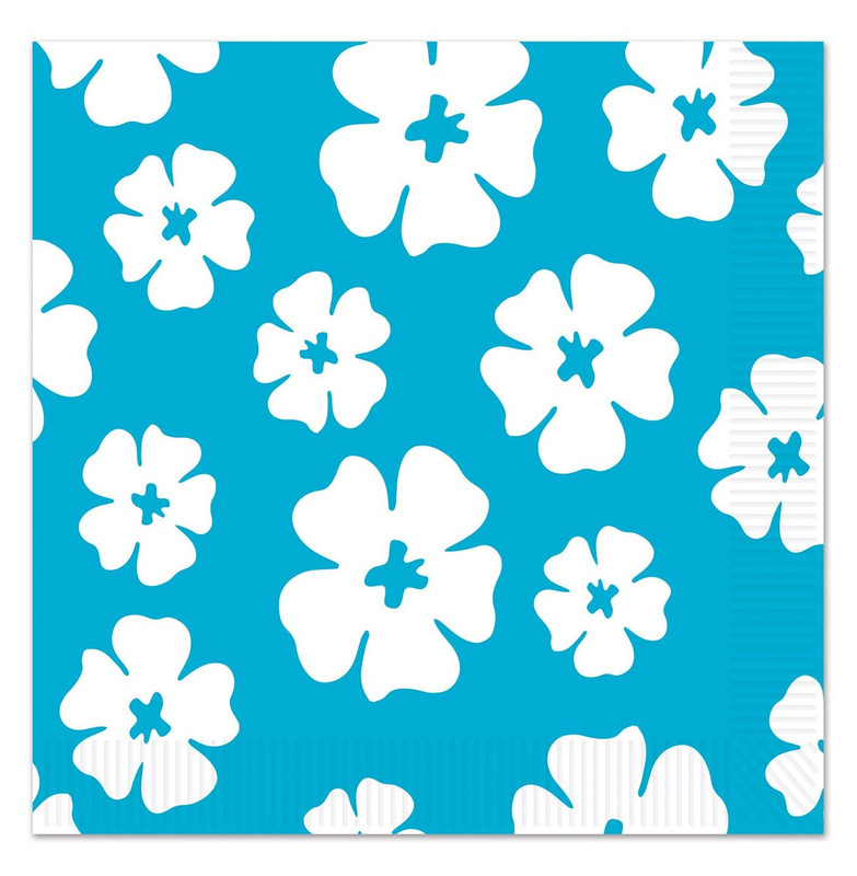 Add a breezy island vibe to your party with these Hibiscus Luncheon Napkins. Featuring a turquoise background and a pattern of white hibiscus flowers, these 2-ply paper napkins are perfect for tropical-themed events, luaus, beach parties, or summer cookouts. Package includes 16 count napkins measuring 6.5in when folded