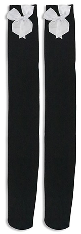 Create a sultry look for your costume with these Adult Thigh High Stockings with Bow! These stockings have bows at the top. Available in black stockings with white bow or white stockings with pink bow. Desired color not guaranteed. One size fits most.