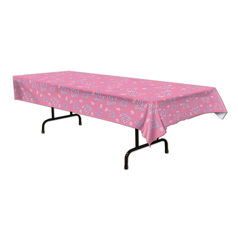Spruce up your table for your girl baby shower with this It's A Girl Table Cover! This pink plastic cover features “It's a Girl!” with pink pacifiers on it. Table cover measures 54in x 108in.